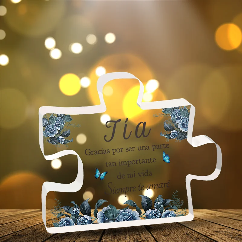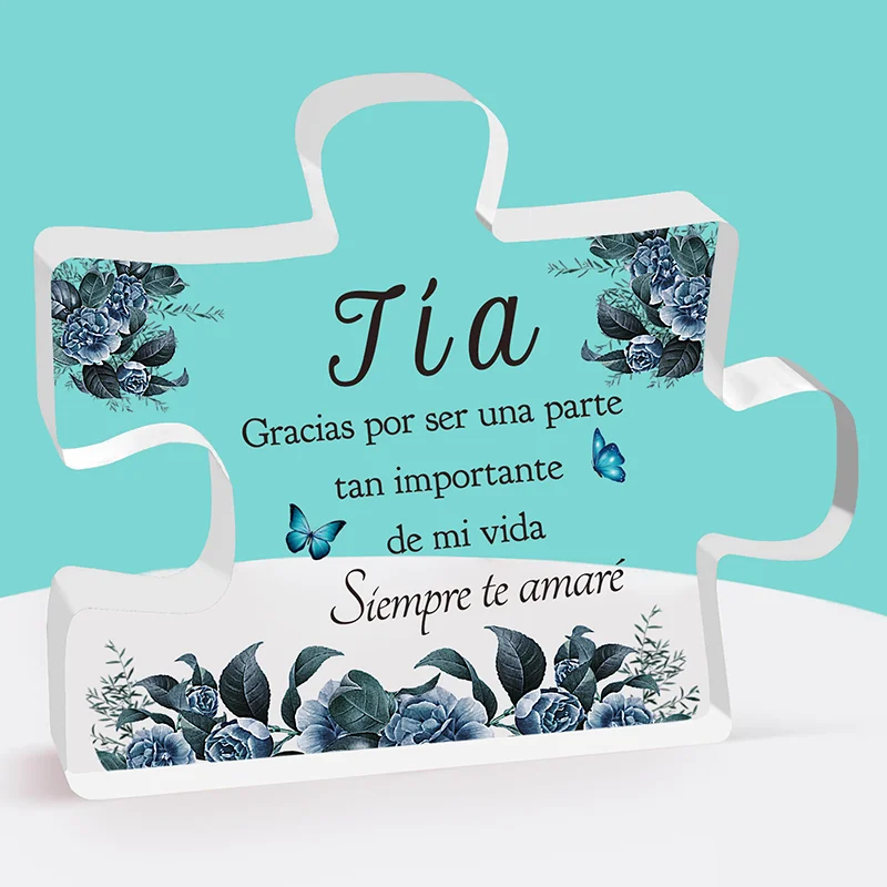 1pc, Spanish Enhanced Acrylic Block Puzzle Plaque – Delicate Aunt Gifts – Perfect Christmas Anniversaries Wedding Birthdays