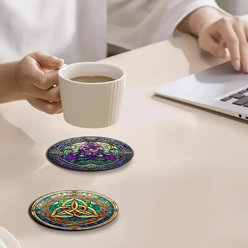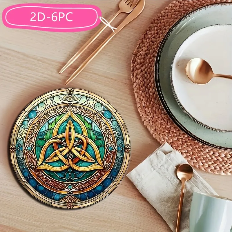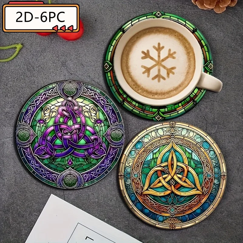 6 PCS 2D Wooden Coasters Celtic Knot Pattern Theme Desktop Insulation Mats Home Decor Coffee Cup Coaster Officeg Colleague Gifts