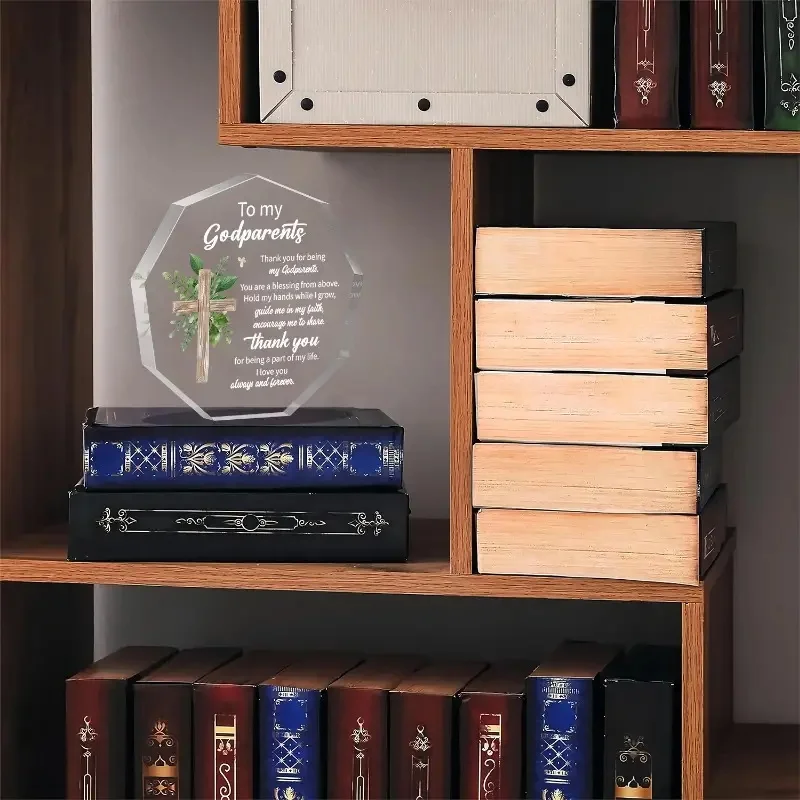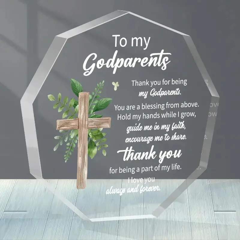 Contemporary Acrylic Plaque Godparents Appreciation Tabletop Decor Thank You Sign with Cross Multipurpose Keepsake Gift